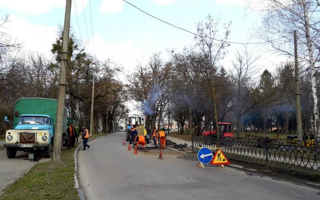 Нагадаємо, що там просів асфальт. Дорожники ще минулого тижня провели ремонт проїжджої частини вулиці. Роботи продовжуються й сьогодні. Ділянку обгородили відповідними дорожніми знаками.