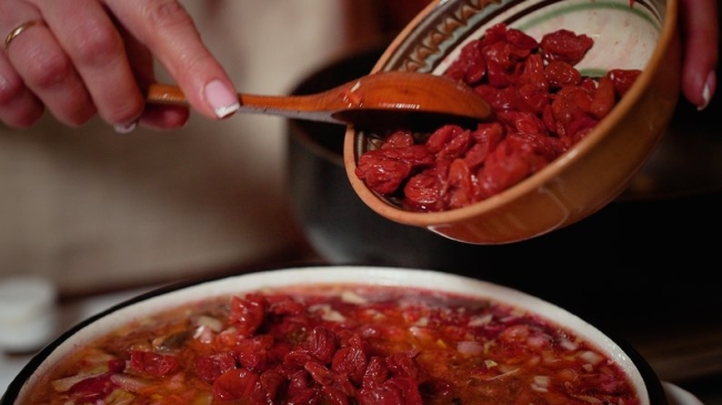 – Борщ — старовинна традиційна страва, яку готують чи не всі господині. Але в кожної є свій рецепт. Я взяла цей рецепт від своєї прабабусі. Родзинка борщу по-гощанськи — вишні, які додають не лише винний колір, а й кисло-солодкий смак, — поділилася у проєкті Суспільного -“Кулінарний спадок” жителька селища Гоща Олена Вінічук.