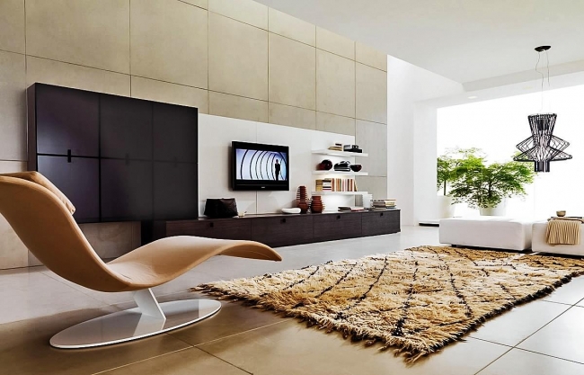 • Ідея стилю – економне використання площі, простір організовано лаконічно і просто. Замість перегородок і стін – зонування за допомогою меблів, подіумів, підвищень.