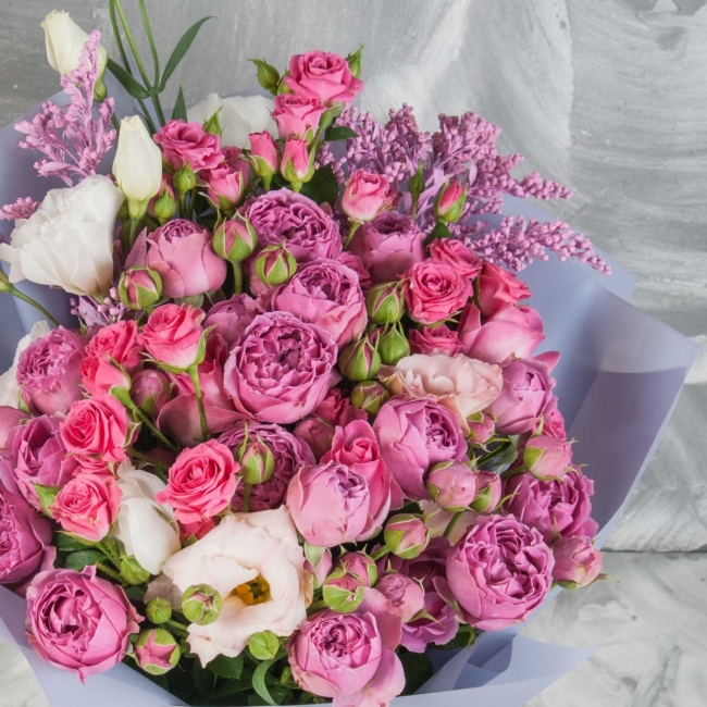 Монобукети добре підносити на свята: вони завжди виглядають вишукано та елегантно. А коли потрібен фантазійний милий букетик, обирайте комбінації з різних рослин. Якщо букет складений професійним флористом, таке творіння буде мати ідеальні пропорції та сполучення.