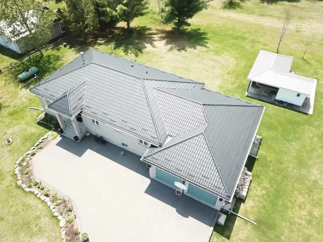 • металочерепицю. Це листи оцинкованої сталі, що мають захисне полімерне покриття та імітують черепицю. Мають невелику вагу, доступну ціну, простий монтаж, не є пожежонебезпечними, стійкі до механічних ушкоджень. Однак вимагає додаткового утеплення та шумоізоляції;