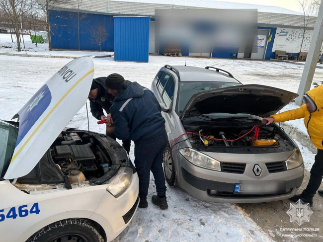 А поліцейські офіцери громади під час патрулювання в місті Радивилів побачили біля автомобіля чоловіка: він намагався зупинити попутний транспорт, але все намарно. Виявилось, що в кросовері розрядився акумулятор. Поліцейські оперативно підключили клеми від службового авто та допомогли завести двигун.