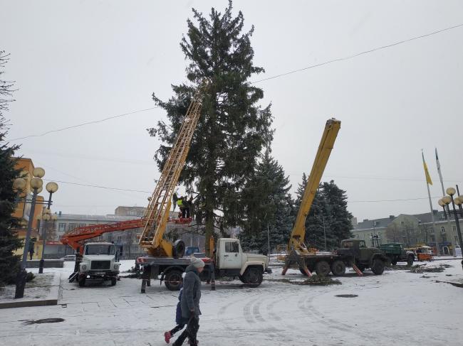 Вчора до Рівного привезли центральну новорічну ялинку, яку одразу встановили на майдані Незалежності.