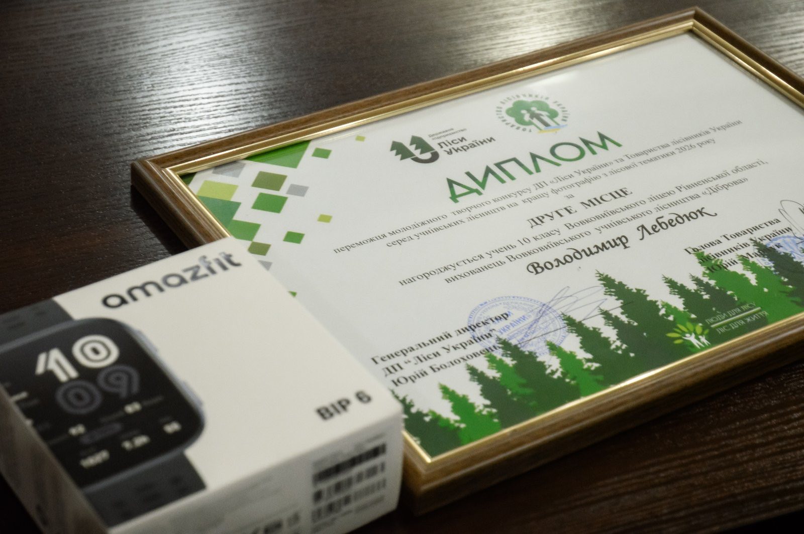 Володимир Лебедюк, учень 10 класу Вовковиївського ліцею та вихованець учнівського лісництва «Діброва», посів друге місце у фотоконкурсі «Цей ліс живий, у нього добрі очі».