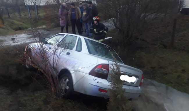 Атомобіль марки Lada Priora з’їхала в кювет та перекинулася. Водій та пасажир не змогли самостійно залишити машину.