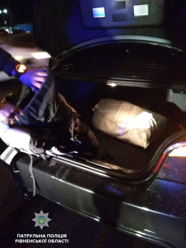 Під час поверхневої перевірки у багажнику автомобіля 32-річного рівнянина інспектори виявили два мішки бурштину.