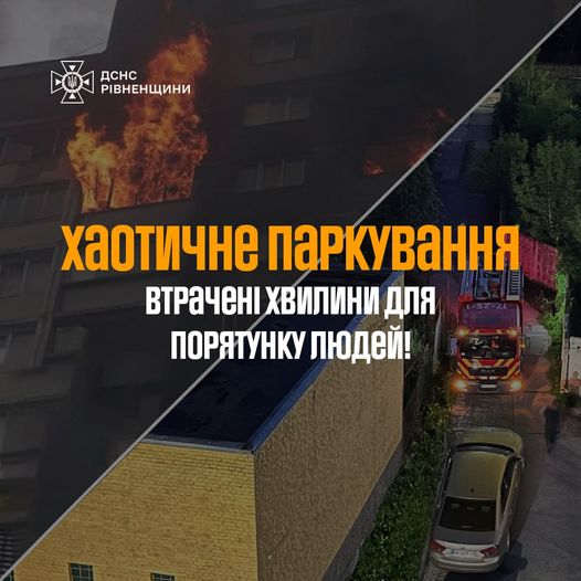 – Хаотичне паркування – втрачені хвилини для порятунку людей! Вчора до рятувальників надійшло повідомлення про дим з вікна на 6-му поверсі багатоповерхового житлового будинку в місті Рівне. На жаль, через щільно припарковані авто рятувальники втратили чимало дорогоцінного часу. На щастя, обійшлось без жертв.
