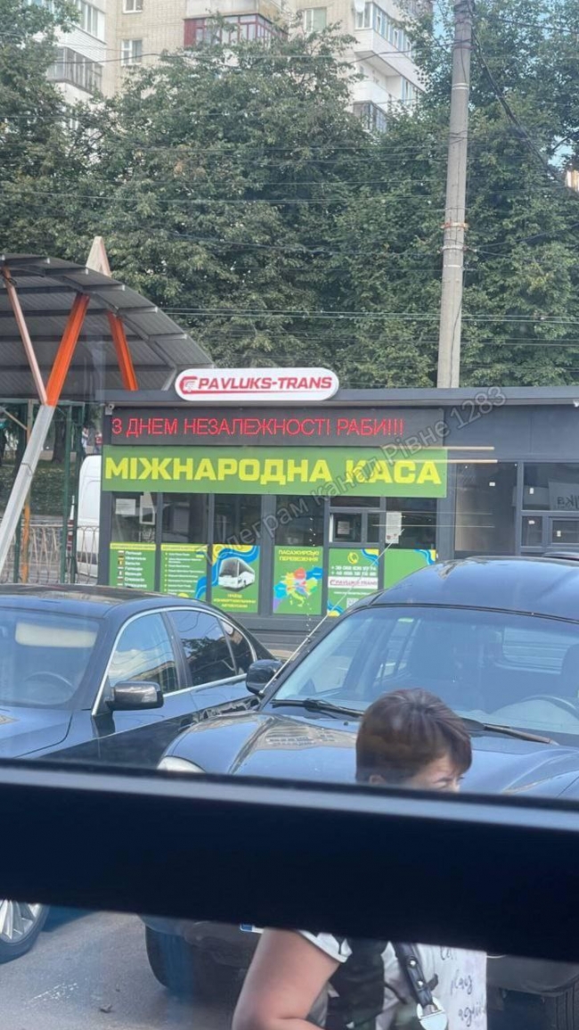 Шокуючий напис помітили на табло одного з кіосків на міському автовокзалі. Очевидці розповсюдили кадр у соцмережах, зокрема, у місцевому телеграм-каналі Рівне 1283.