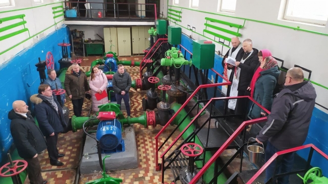 На станції КП "Вараштепловодоканал" сьогодні освятили воду. Тепер із кранів у помешканнях містян тече не проста вода.