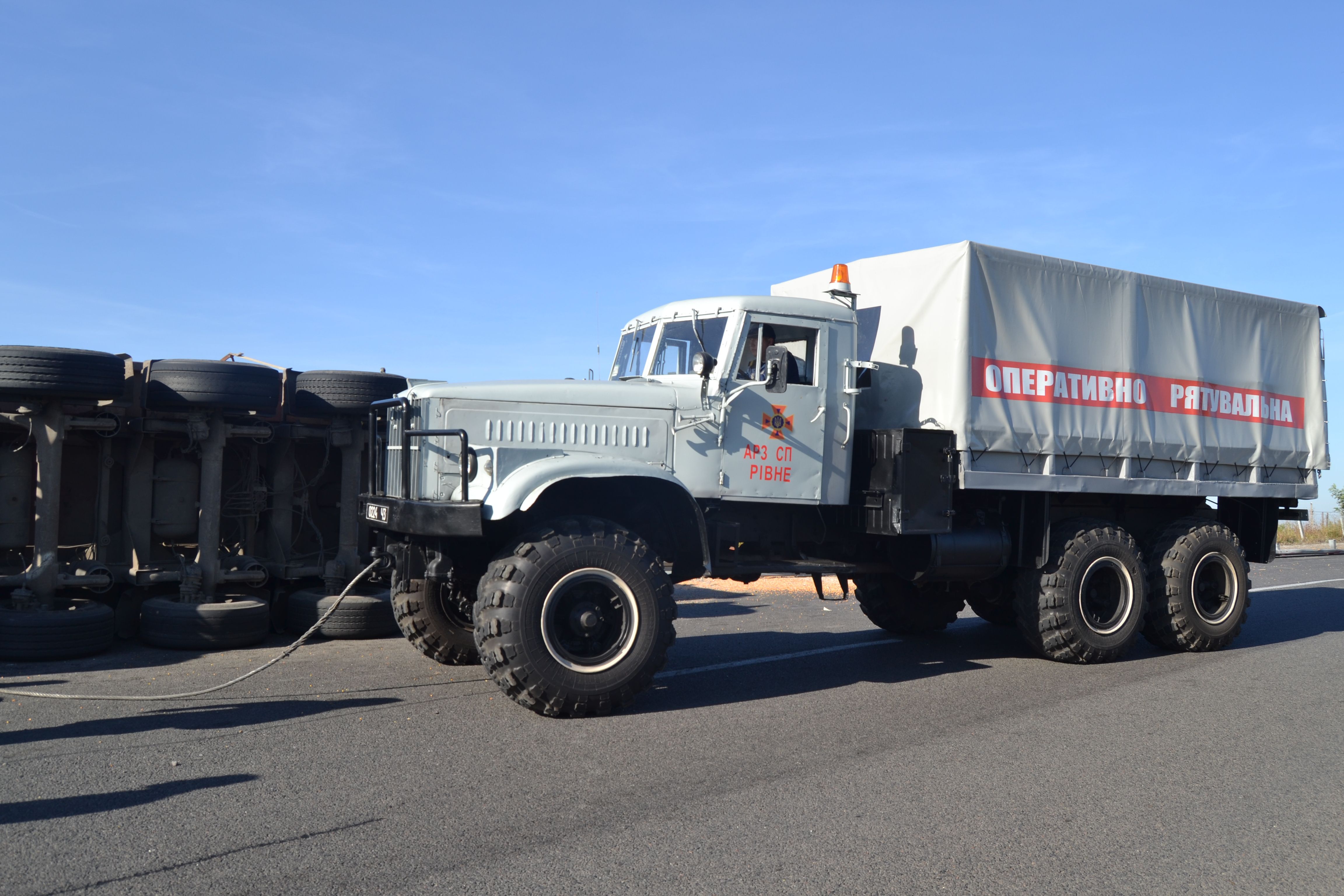 За допомогою тягача на базі КрАЗа аварійно-рятувальної частин Держслужби з НС та автомобіля на базі МАЗа рятувальники спочатку підняли кабіну вантажівку, а згодом і причіп автомобіля Renault.