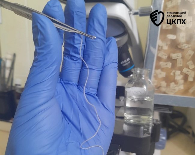 Після огляду та госпіталізації пацієнтку прооперували та з’ясували, що причиною нездужання було паразитування під шкірою глиста Dirofilaria repens, повідомляє обласний лабораторний центр.