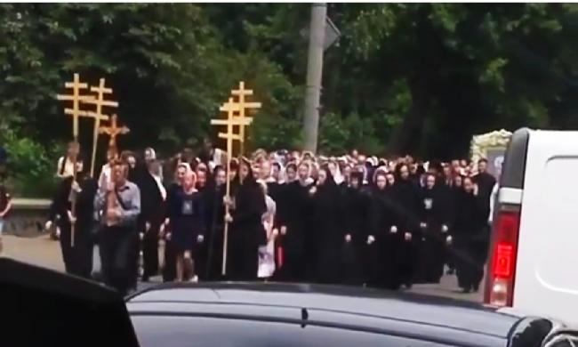 Очевидці пишуть, що колона розтягнулася майже на кілометр. Прихожани несуть ікону та моляться. Їх супроводжує патрульна поліція.