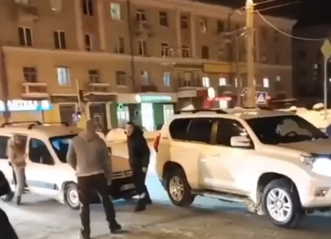 Нагадаємо, що навпроти Театральної площі побилися водій «Тойота Ленд Крузер» та «Сітроен Берлінго». Після бійки останній лежав на проїзній частині.