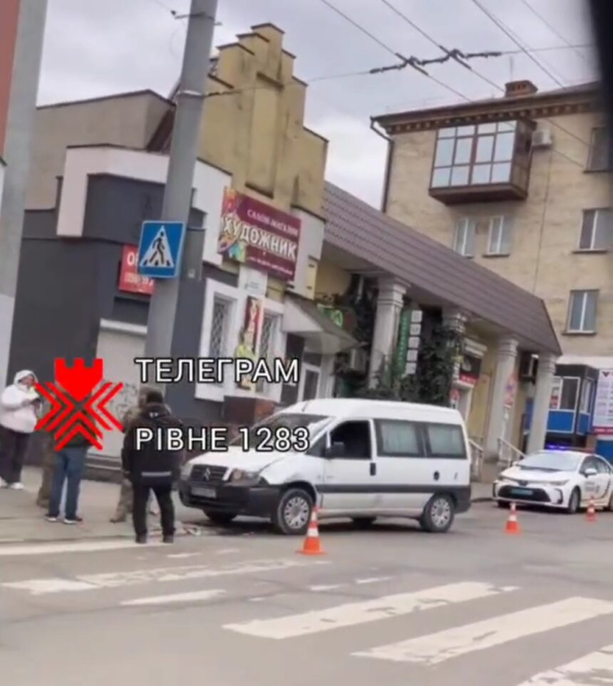 Пригода трапилася на вулиці Соборній, біля повороту на вулицю Петра Дорошенка – якраз поруч з пішохідним переходом. Коротке відео з місця оприлюднили у телеграм-каналі Рівне1283.