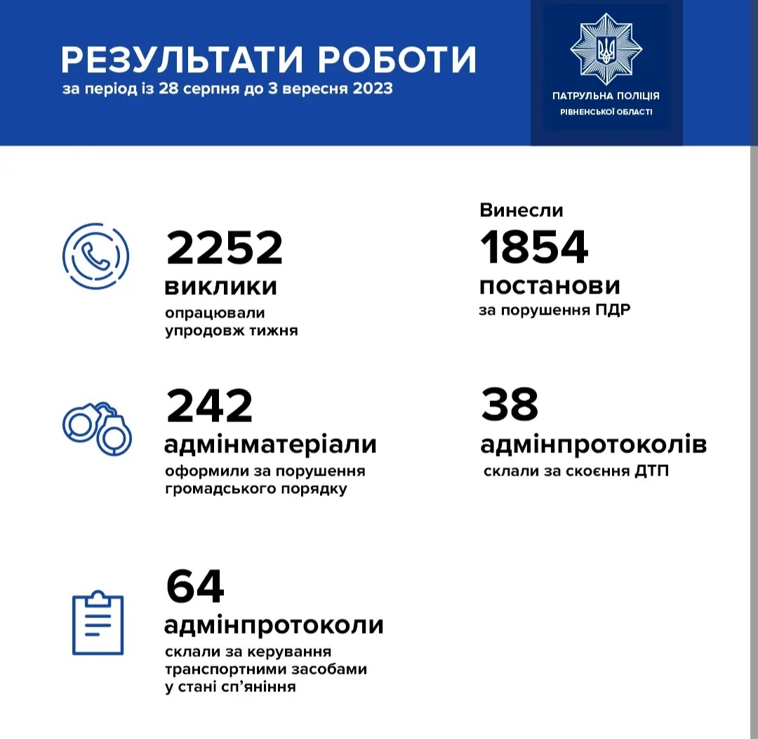 А це результати роботи патрульних за минулий тиждень. Зокрема, виявили 64 водіїв, які сіли за кермо напідпитку.