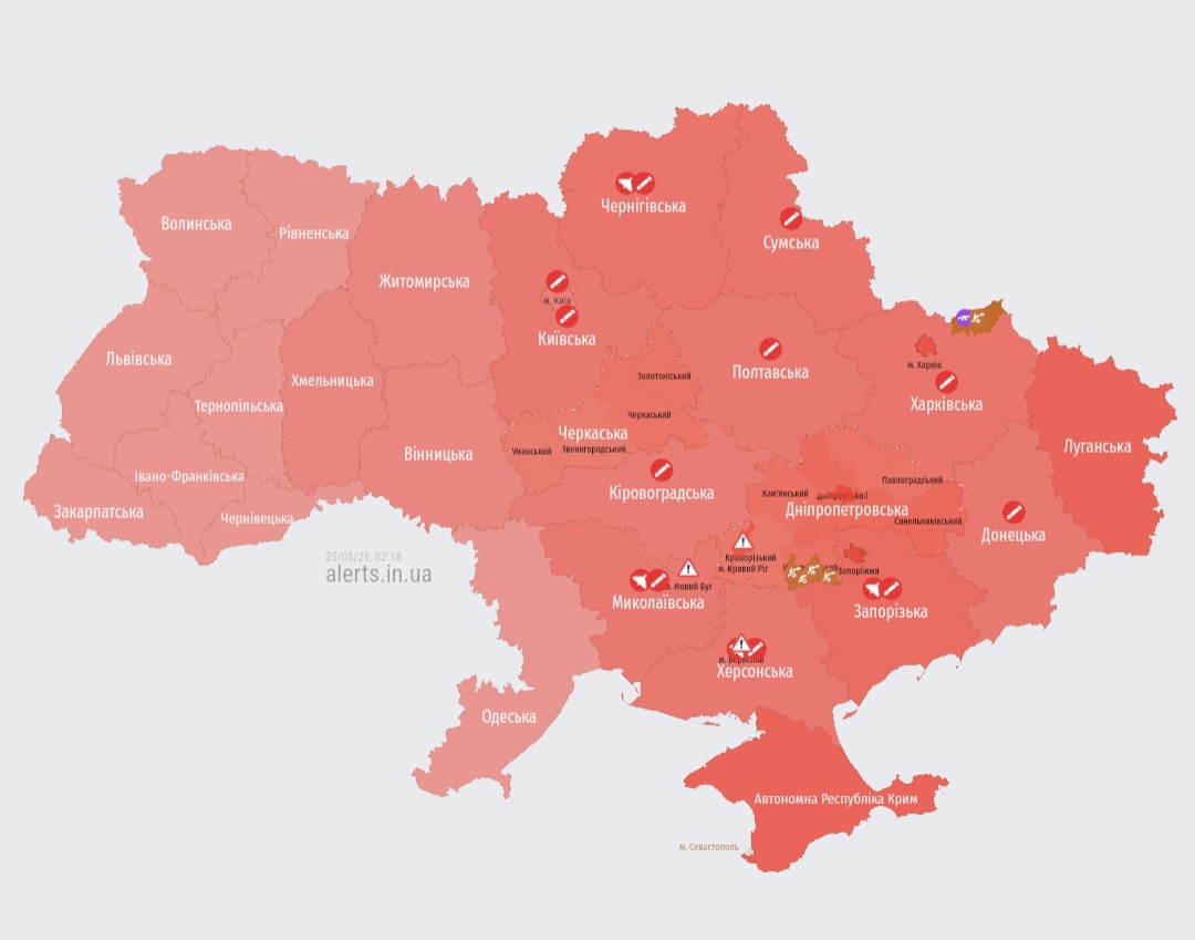 На мапі повітряних тривог “почервоніла” вся країна. Тим часом, у повітряному просторі летять перші ракети.