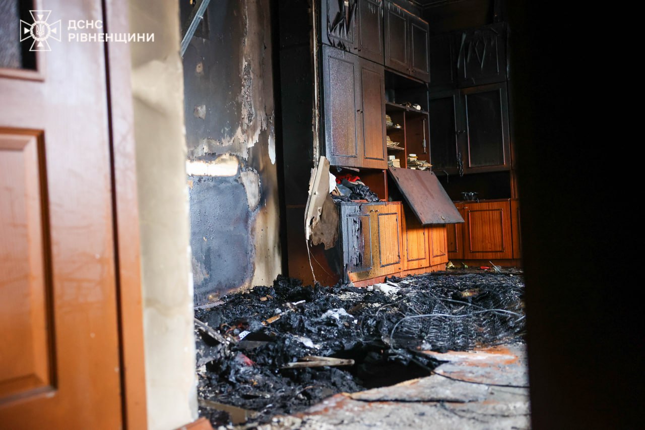 – За попередніми даними, ймовірною причиною пожежі могло стати коротке замикання електроподовжувача, – кажуть у ГУ ДСНС Рівненщини.