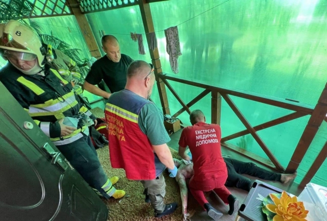 В будинку знаходився непритомний чоловік, якого люди винесли на вулицю.