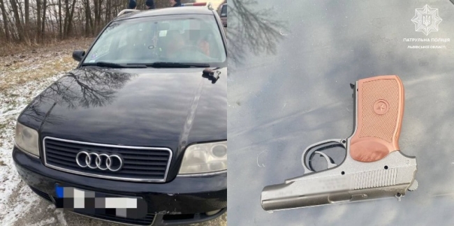 Патрульні розпочали розшук автомобіля та водія.”Aуді A6″ зупинили орієнтовно через 10 кілометрів у напрямку Львова. У 45-річного мешканця Закарпаття виявили зброю, схожу на пістолет Макарова. Чоловік не зміг надати чітких пояснень щодо цєї події. На місце події викликали слідчо-оперативну групу.