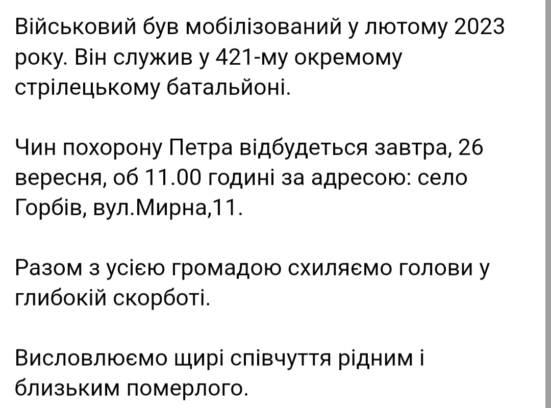 Новини Захисник з Гощанщини помер через важку недугу Завтра у рідному селі Горбів поховають військовослужбовця Петра Вознюка. admin 25 Вересня 2023, 19:00 0 хв. читання Поділитися Сумну звістку повідомили у Гощанській селищній раді. З 1 січня зарплати педагогів мають вирости на 30% Через генератор у Броварах смертельно отруїлася газом людина В усіх районах Рівненщини – часткові знеструмлення Лимони потрібно їсти, але не тільки через вітамін С Від завтра на Героїв Поліції у Рівному – односторонній рух Поділитися цією статтею Facebook Telegram Копіювати посилання Приєднуйтесь 58KСтежити1.2KСтежити13.9KСтежити6.1KПідписатися Читайте нас у Telegram: тільки важливі та перевірені новини Новини 28 Грудня 2025 З 1 січня зарплати педагогів мають вирости на 30% 14:30 Через генератор у Броварах смертельно отруїлася газом людина 14:01 В усіх районах Рівненщини – часткові знеструмлення 13:32 Лимони потрібно їсти, але не тільки через вітамін С 13:03 Від завтра на Героїв Поліції у Рівному – односторонній рух 12:29 Буде слизько: синоптики Рівненщини попереджають про ожеледицю 12:00 Центр Рівного перестане підтоплювати після сильних дощів 11:30 25 гривень за годину: за паркування біля базарів треба буде платити 11:00 В обід до Рівного прибуде екіпаж місії «На щиті» 10:33 В страшній ДТП у Польщі могли загинути українці 10:00 Всі новини