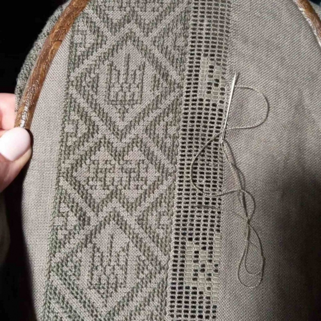 Зараз пані Мирослава вишиває сорочку бойовому медику з Рівного. Взагалі ж серед захисників, яким вона створила такі обереги, є і танкіст, і медсестра.