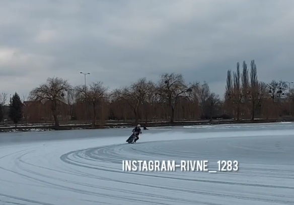 У рівненському Гідропарку перемерзла Устя. Відтак, місцеві жителі використовують водойму, як каток. У соціальних мережах помістили відео, де по льоду дрифтує мотоцикліст.
