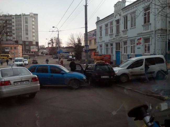 Водії трьох автомобілів, які зіткнулись на вулиці Дубенській у Рівному, претензій один до одного не мають. Фото цієї ДТП опублікував Анатолій Тимошенко у спільноті “Я паркуюсь як мудак”, що у Фейсбуці.