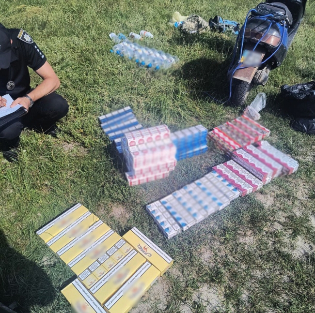 Під час спілкування та огляду речей правоохоронці виявили у чоловіка 12 пластикових пляшок із алкоголем, а також 540 пачок цигарок без марок акцизного податку.