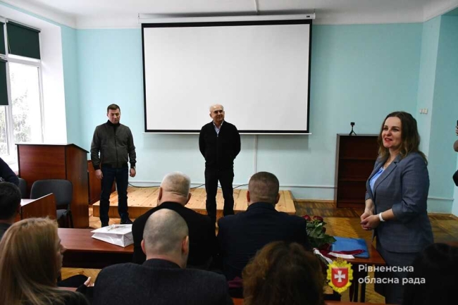 Голова Рівненської облради Андрій Карауш подякував Ростиславу Сабадишину за багато років у закладі: