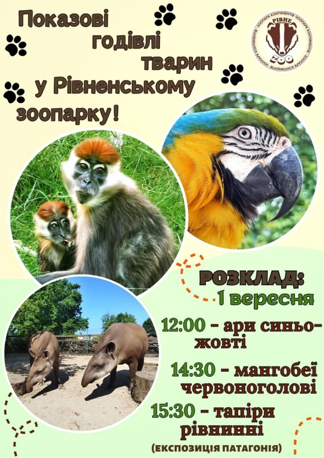 Опівдні почнуться показові годівлі синьо-жовтих папуг ара, о 14.30 обідатимуть червоноголові мангобеї, а о 15.30 – рівнинні тапіри.