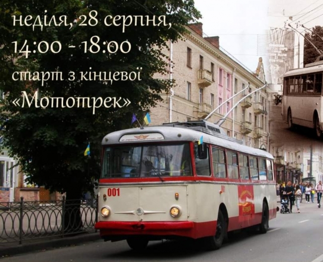 Початок мандрівки – 14:00 з кінцевої зупинки “Мототрек”, тролейбус курсуватиме містом до 18:00.