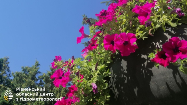 – Мінлива хмарність. Без опадів. Вночі та вранці слабкий туман. Вітер південний, 5-10 м/с. Температура повітря: вночі 11-16°; вдень 25-30°; у Рівному: вночі 13-15° ; вдень 28-30°.