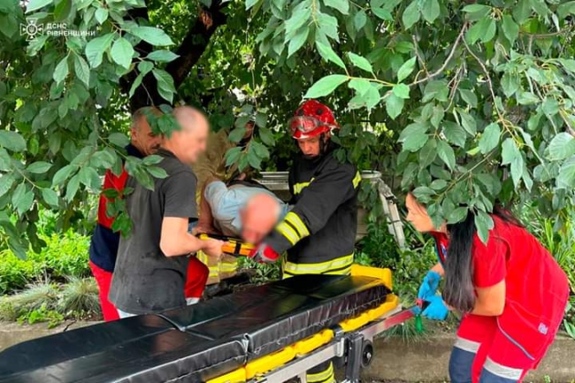 Рятувальники пожежно-рятувальної частини, що прибули на місце виклику, за допомогою аварійно-рятувального інструменту обрізали металеві прути та передали 75-річного чоловіка медикам.