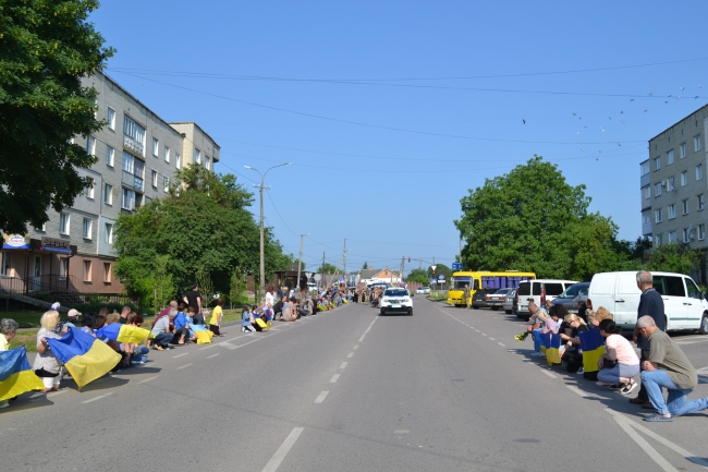 Люди зустрічали коридором пошани кортеж з тілом захисника.