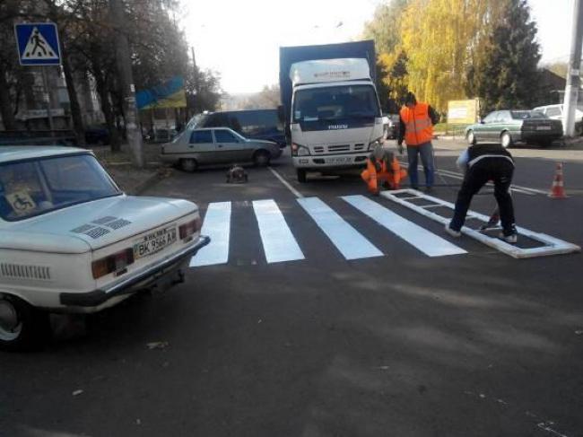 Мені розповідають, що 97% розмітки у Рівному вже нанесено. Але люди не сліпі — ті, хто має автомобіль, помічають, що нової розмітки на дороги нанесено максимум 10%, а все інше затерто. Проїдьте вулицею Міцкевича біля готелю «Мир» чи кінотеатру «Україна» і побачите, в якому стані там пішохідні переходи. Розмітка, яка має піврічну гарантію, у деяких місцях уже постиралася. Мене найбільше обурює те, що скоро розпочнеться новий навчальний рік, а пішохідних переходів біля шкіл узагалі немає.
