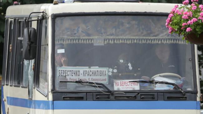 Заступник міністра внутрішніх справ Антон Геращенко опублікував відео звільнення трьох заручників з автобуса в Луцьку. Про звільнення заручників домовився перший заступник глави Нацполіціі Євген Коваль. Звільнено жінку, підлітка і молоду вагітну дівчину. Загалом в автобусі перебувало трохи більше 10 осіб. Потім до автобусу під час спецоперації під’їхав бронетранспортер.