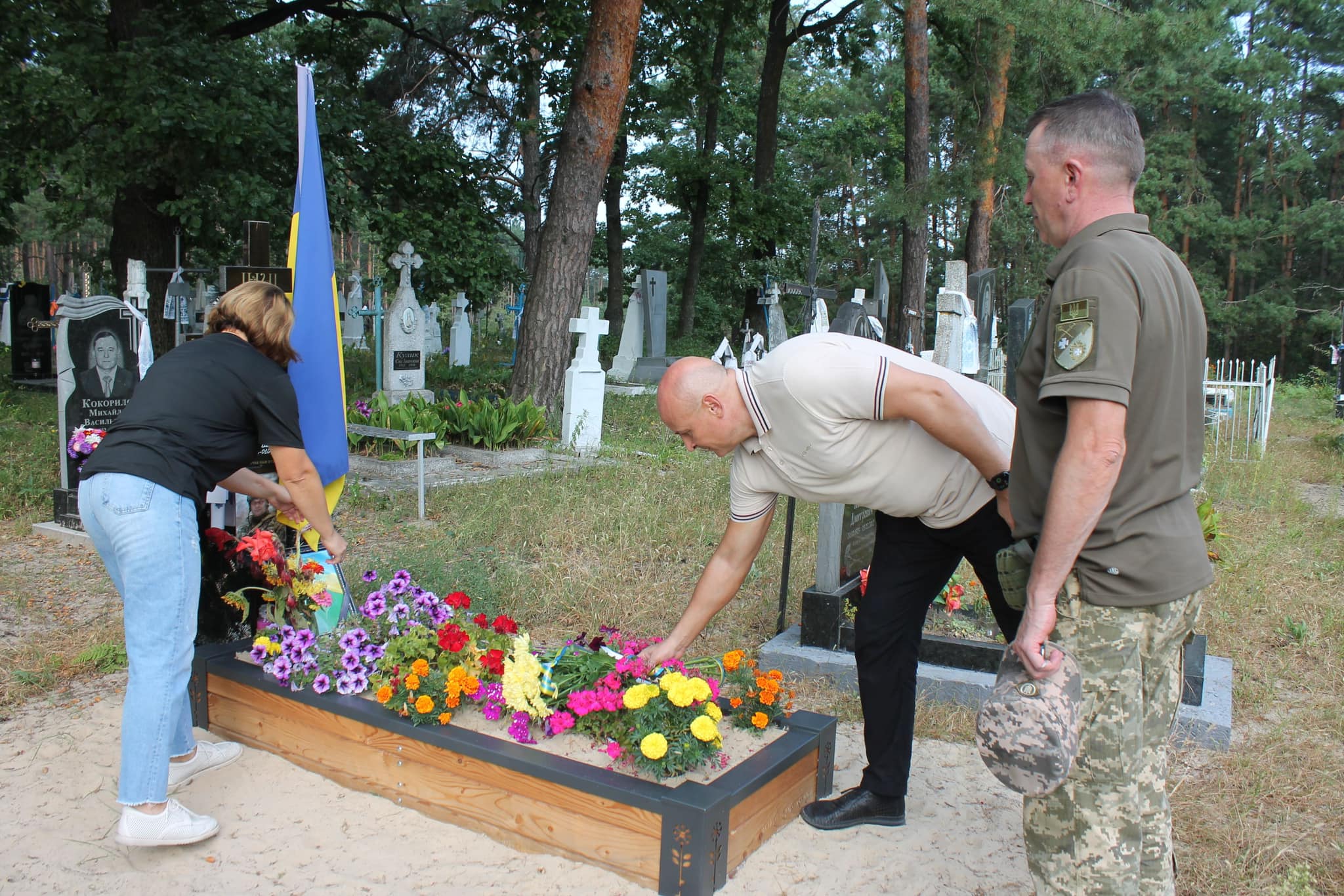 Сьогодні, у День пам’яті захисників України, міський голова Березного Руслан Пилипчук та начальник першого відділу Рівненського районного територіального центру комплектування та соціальної підтримки підполковник Андрій Пилипака поклали квіти на могилу полеглого Героя України у селі Кургани та зустрілися з дружиною загиблого українського воїна Радіо Наталією Василівною.