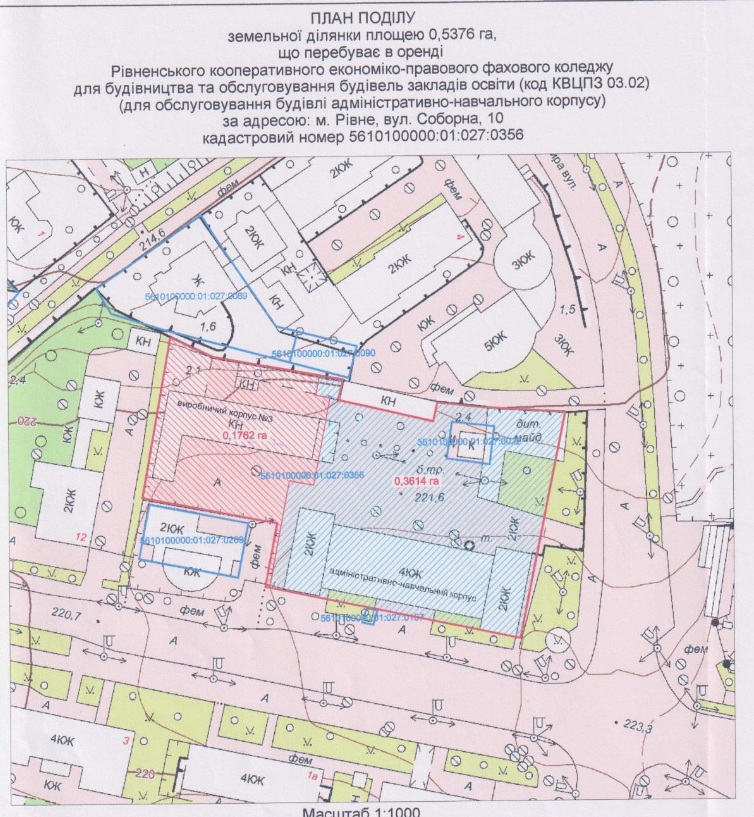 — Це територія Рівненського кооперативного коледжу — була до того, як коледж відчужив своє приміщення… Не знаю, яким шляхом. Але він вже не є власником одного з приміщень. Власники, які придбали це приміщення, звернулися по надання земельної ділянки, яка знаходиться під цим приміщенням. Попередньо був поділ, на сесії цей поділ затверджено.