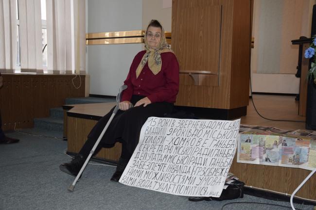 – Живу в маленькій кімнатці, яку я не приватизувала, але яка видана мені законно, що визнано всіма судовими інстанціями, – розповіла жінка кореспондентці РВ. – Я маю першу групу інвалідності, пересуваючись з допомогою палички. Мені важко користуватися спільним санвузлом. Прошу надати мені кімнату на першому поверсі і обладнали туалет, підвести до кімнати воду. Я вже 15 років цього добиваюся. У 2016 році депутатська група мені це пообіцяла. До сих пір нічого не зроблено.