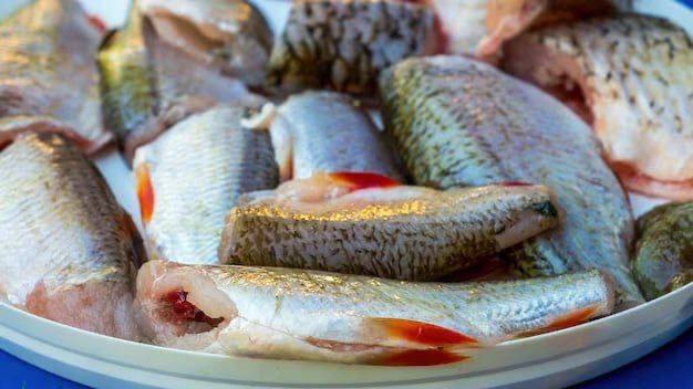 Лосось, скумбрія, сардини та інші види жирної риби багаті на білок і омега-3 жирні кислоти, що знижують ризик серцево-судинних захворювань.
