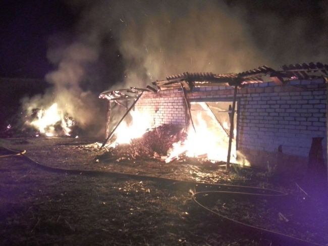 Внаслідок пожежі вогнем знищено 4 тонни сіна, 2 м. куб. дров, покрівлю та перекриття цегляної господарчої будівлі розміром 10х5 м. До ліквідації було залучено дві автоцистерни та вісім рятувальників. Причина пожежі та розмір збитків встановлюються.