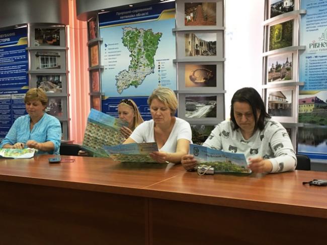 Журналістам розповіли про «Рівненщину туристичну» ,  вручили «Паспорт мандрівника» та запросили до участі у грі-квесті «На власні очі». Нагадаємо, суть гри полягає у тому, щоб подорожуючи Рівненською областю, відвідати якомога більше об’єктів, позначених на спеціальній карті та вклеїти унікальні марки у власний «Паспорт мандрівника».