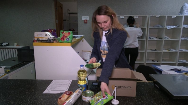 – У нас є доступний продуктовий набір на Укрпошті, який людина може придбати. Набір коштує 300 гривень. Тобто, частиною грошей можна сплатити за комунальні послуги і придбати продуктовий набір: олію, паштет у консерві, солодощі, печиво, цукерки шоколадні, халву, ну і шоколадку, і батончик.