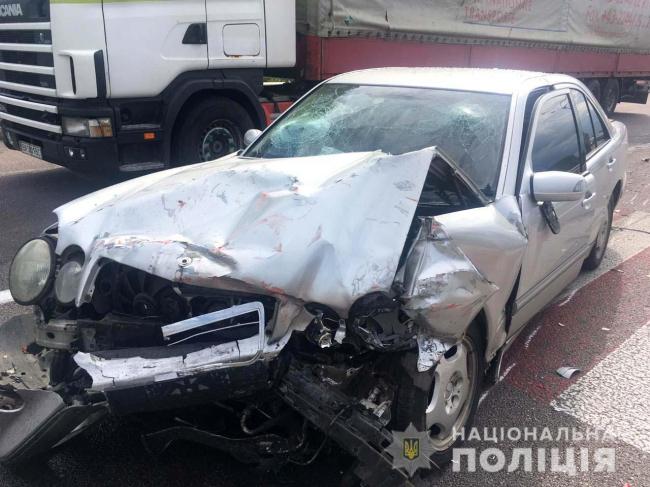 Поліцейські встановили, що 25-річний рівнянин їхав автомобілем «Mercedes-Benz E320» у напрямку столиці. Він не врахував дорожньої обстановки, не вибрав безпечної швидкості руху та допустив зіткнення із автомобілями «Opel Vivaro» і «Peugeot Partner». Мікроавтобус за інерцією в’їхав в автомобіль «Nissan Micra». Усі три транспортні засоби зупинилися перед нерегульованим пішохідним переходом, пропускаючи пішохода.