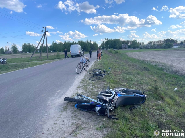 За кермом мотоцикла «Loncin» сидів 13-річний житель села Велике Поле. Як розповіли в обласній поліції, підліток зіткнувся із мікроавтобусом «Volkswagen Crafter» під керуванням 32-річного односельчанина.