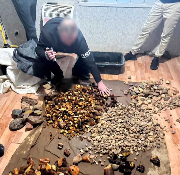 Правоохоронці провели обшуки в рамках кримінального провадження за ч. 2 ст. 240-1 Кримінального кодексу України (незаконне видобування, збут, придбання, перевезення та переробка бурштину). У результаті вилучено: