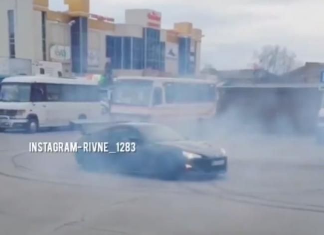 Очевидці помітили дрифтера цього разу біля автостанції “Чайка” та оприлюднили відео його небезпечних викрутасів перед маршрутками в інстаграм-спільноті Rivne_1283.