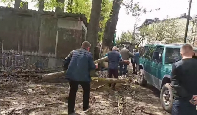 – Працівники КП “Здолбунівське” із філігранною точністю витягли та завантажили зрізані колоди, які тепер є речовими доказами незаконної вирубки дубів. Станом на 15:10 найбільші дубові колоди були завантажені на причіп, без жодної шкоди для припаркованих автівок, – йдеться у повідомленні.