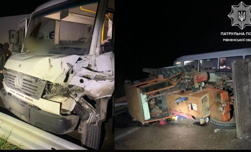 Між собою зіткнулися вантажівка, маршрутка та трактор, повідомляє поліція Рівненщини.