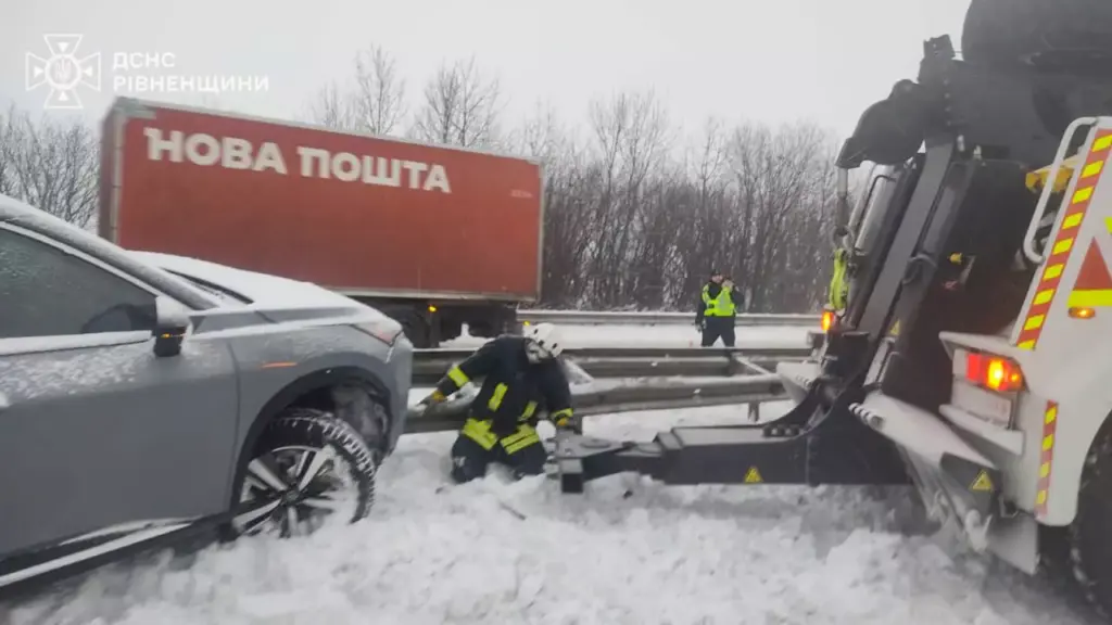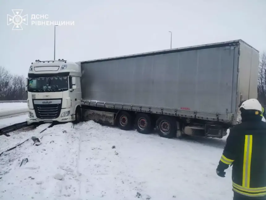 Під час руху занесло вантажівку, яка врізалася у відбійник, повідомляє ДСНС.